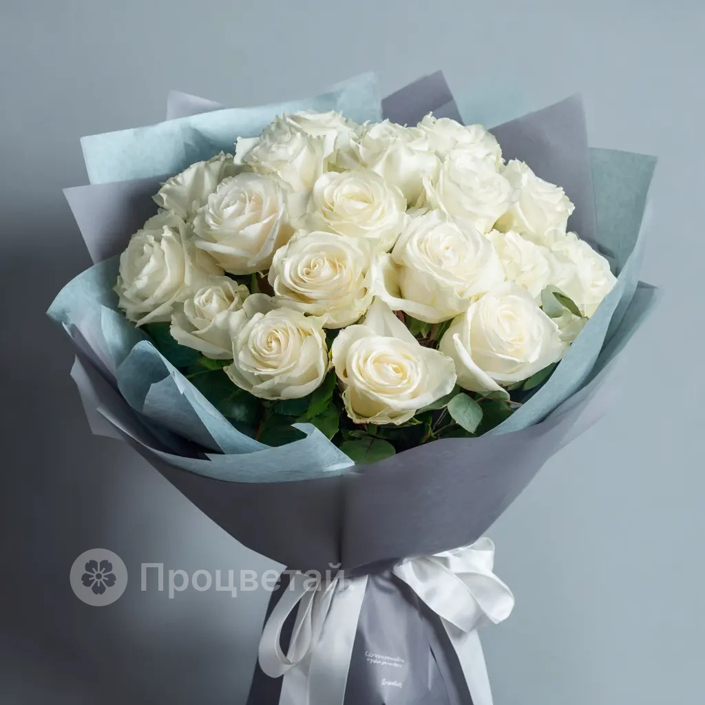 15 белых роз российских