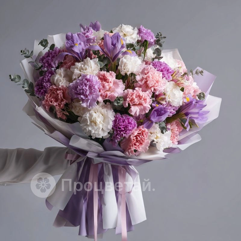 ГлавнаяКаталогБукетыБукет с гвоздиками «Гармония оттенков»