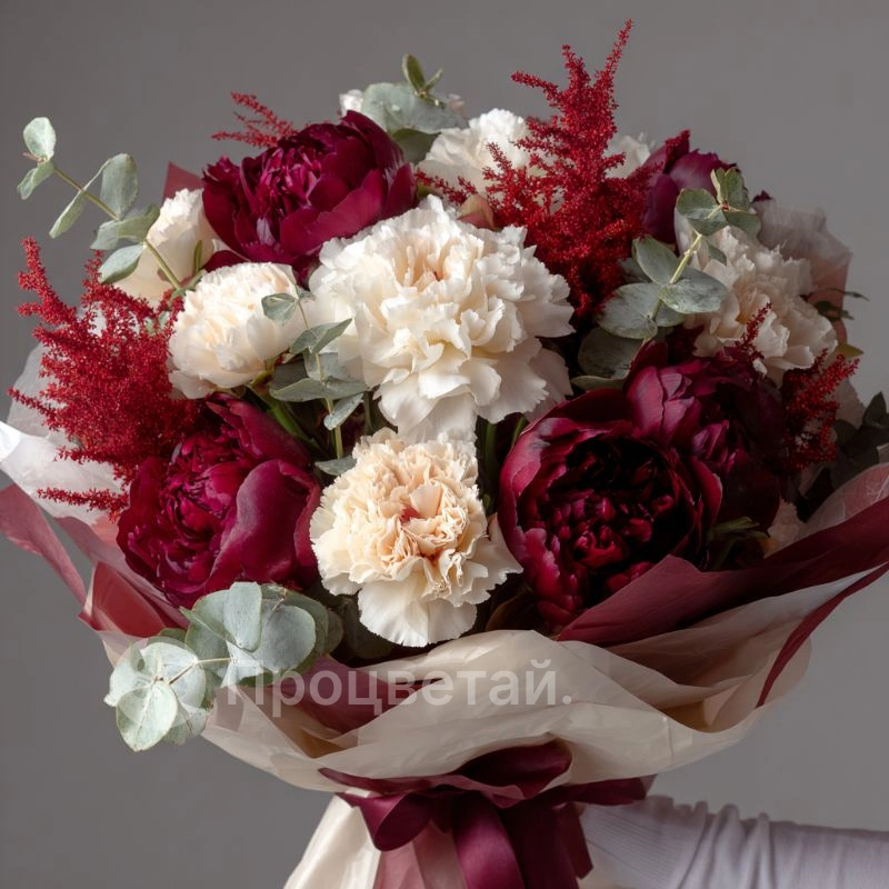 ГлавнаяКаталогБукетыБукет с пионами «Бархатный шелест»