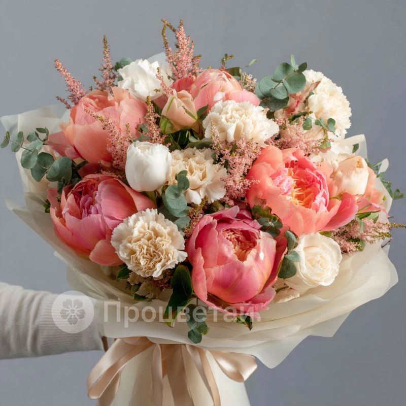 ГлавнаяКаталогБукетыБукет с пионами «Медовый этюд»