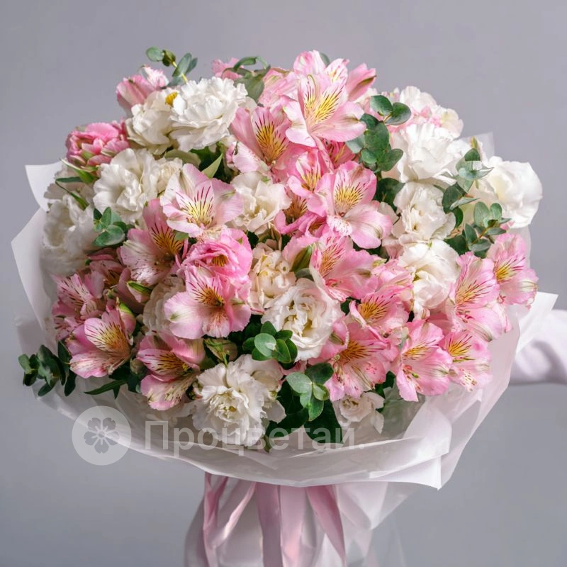 ГлавнаяКаталогБукетыБукет с эустомами «Чистое вдохновение»