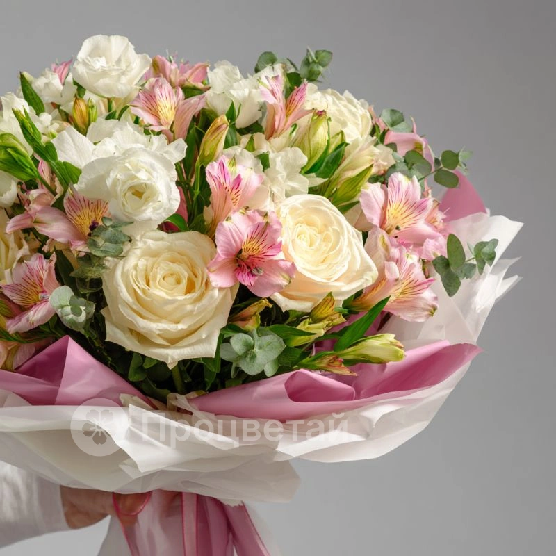 ГлавнаяКаталогБукетыБукет с эустомами «Пыльца нежности»
