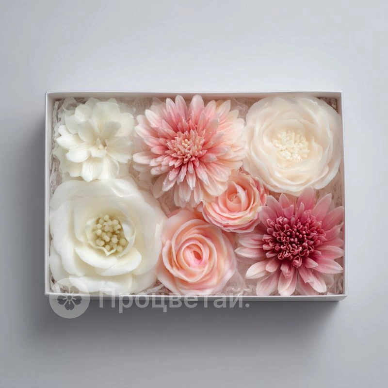 ГлавнаяКаталогПодаркиНабор цветов из мыла «Нежный рассвет»